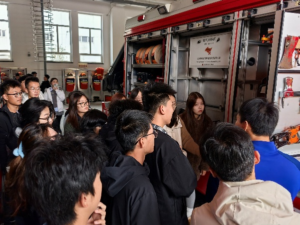 在消防员的引导下,同学们近距离接触了各类消防车辆与专业救援装备,聆听了消防员讲述日常训练与抢险救援的真实经历,并系统学习了灭火器操作、逃生避险等实用消防技能。通过实地参观,同学们不仅深化了对消防救援工作的理解,更深刻认识到“重视消防、学会自救”的重要意义。
