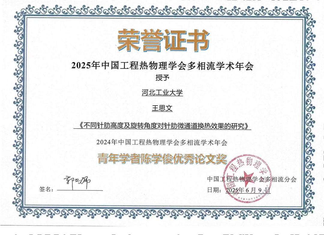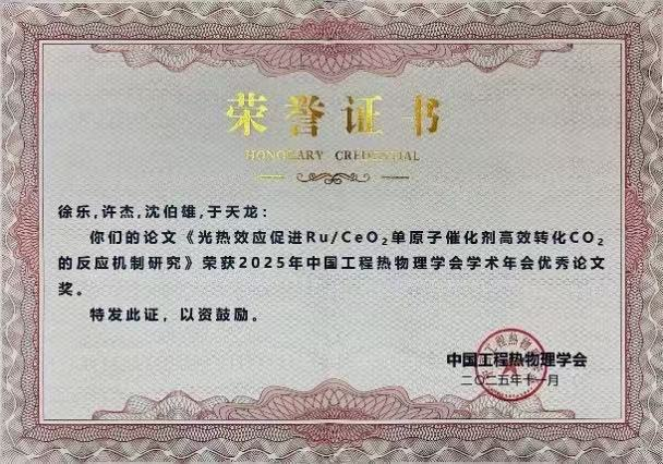 会议期间,学院有《面向跨季节储能的赤藓糖醇复合相变材料储热特性及光热转换性能》、《缺陷石墨烯/相变储热材料界面导热特性及其强化机理》、《锂离子电池排气过程传热特性及其对热失控传播影响规律》、《聚酰亚胺基气凝胶复合相变材料热管理性能强化及其火灾预警应用研究》、《聚酰亚胺气凝胶复合相变材料及其电池热管理与火灾报警应用研究》、《三周期极小曲面强化相变储热性能研究》、《光热效应促进Ru/CeO2单原子催化剂高效转化CO2的反应机制研究》、《芯片功率瞬变下热电制冷器脉冲调控实验研究》、《基于三周期极小曲面的相变储热技术研究》等12篇文章参与了交流。其中,其中,学院硕士生王思文获得青年学者陈学俊优秀论文奖,博士生徐乐获得学会优秀论文奖。